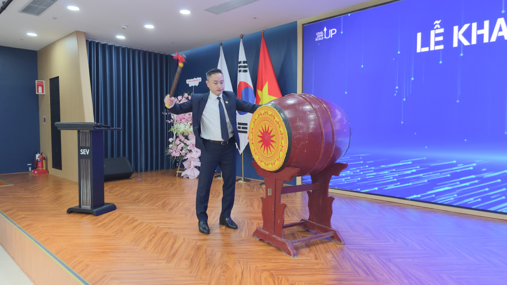 Đại diện phía Nhà trường, Thầy Lê Minh Tiến – Hiệu trưởng, phát biểu diễn văn khai giảng và đánh trống khai trường, thầy khẳng định sự hợp tác giữa SEV và Trường Cao đẳng Công nghệ Bắc Hà đã mang lại nhiều giá trị thiết thực, góp phần hình thành đội ngũ kỹ thuật viên, nhân sự chất lượng cao đang đóng vai trò quan trọng tại Samsung.