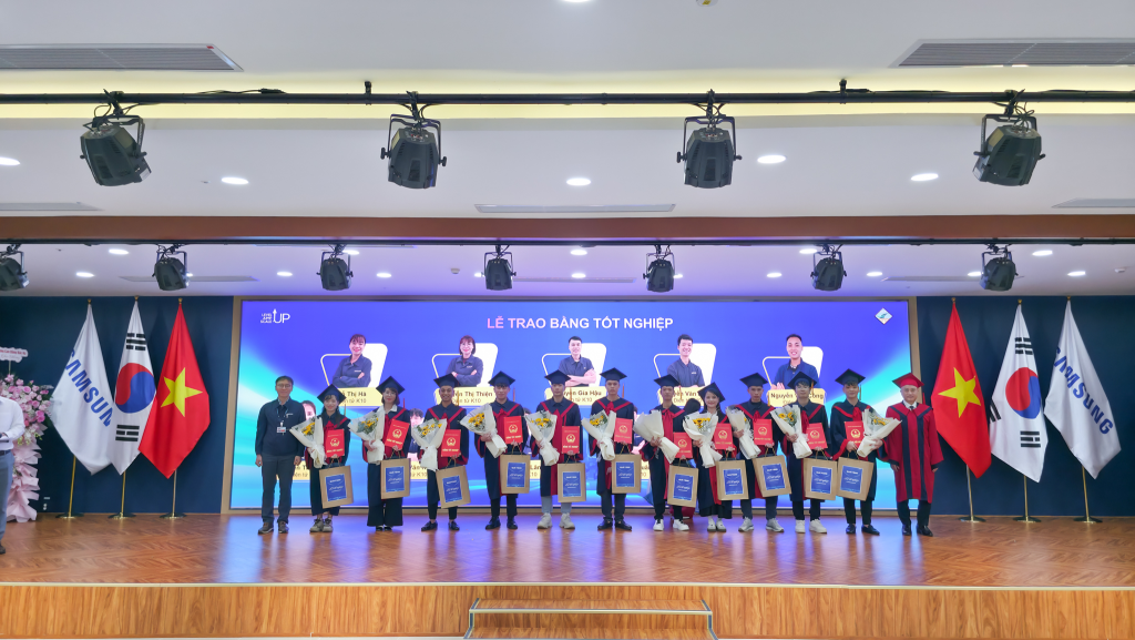 Sáng ngày 17/09/2025, tại Trung tâm Phát triển Nhân tài, Công ty Samsung Electronics Việt Nam (SEV) Trường Cao đẳng Công nghệ Bắc Hà đã long trọng tổ chức Lễ Khai giảng & Lễ Tốt nghiệp Chương trình Cao đẳng Nội bộ SEV 2025. Sự kiện đánh dấu bước khởi đầu đầy kỳ vọng cho khóa học mới, đồng thời vinh danh những học viên đã xuất sắc hoàn thành chương trình trong năm vừa qua.