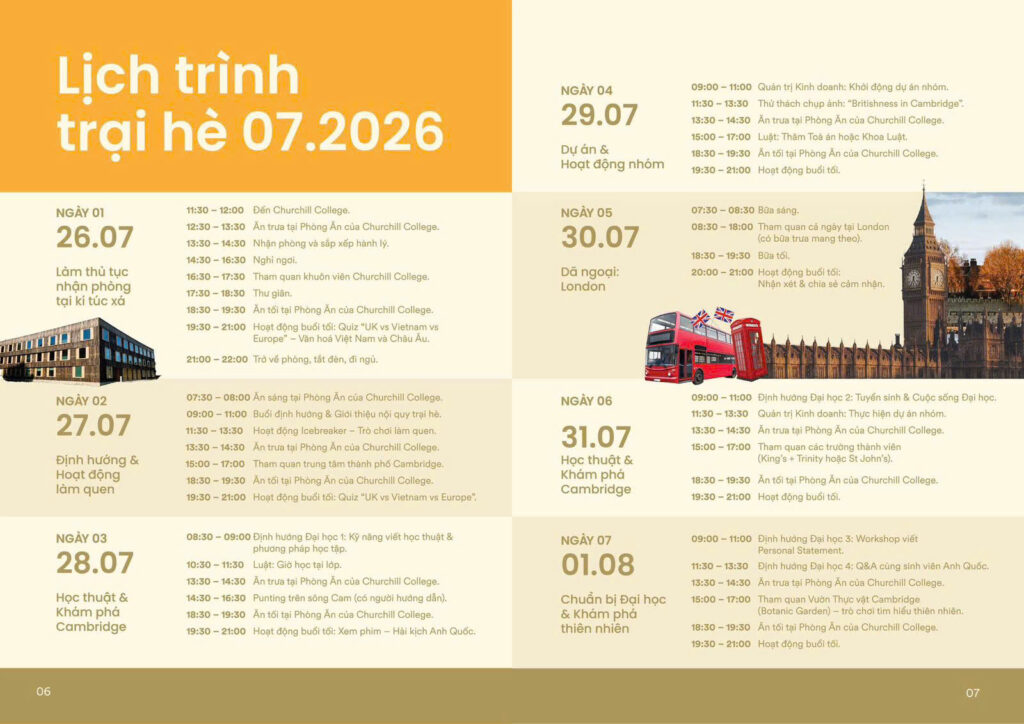 LỊCH TRÌNH TRẠI HÈ 07.2026 - HÀNH TRÌNH TRẢI NGHIỆM & KHÁM PHÁ TẠI CAMBRIDGE
